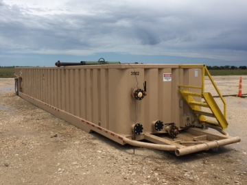 Tank contains sand collection compartment with sliding gate to open fluid to total tank capacity and 4” butterfly valves on each end for clean out.