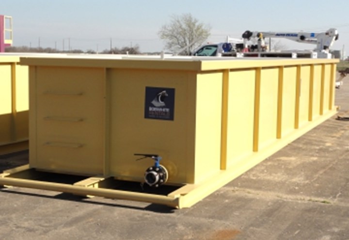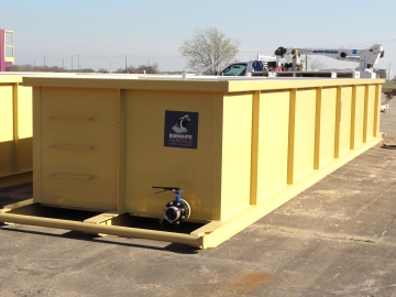 Tank contains sand collection compartment with sliding gate to open fluid to total tank capacity and 4” butterfly valves on each end for clean out.